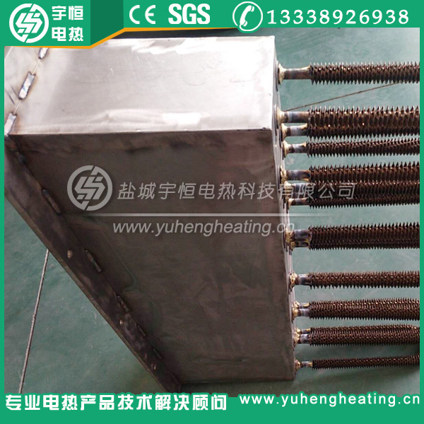 翅片式电加热管,是在普通元件表面缠绕金属散热片,与普通元件相比散热面积扩大了2~3倍,即翅片元件所允许的表面功率负荷是普通元件的3~4倍。由于元件的长度缩短,使得本身的热损失减小,在相同的功率条件下具有升温快、发热均匀、散热性能好、热效率高、使用寿命长、加热装置体积小,成本低等优点。根据用户要求进行了合理的设计,便于安装。
