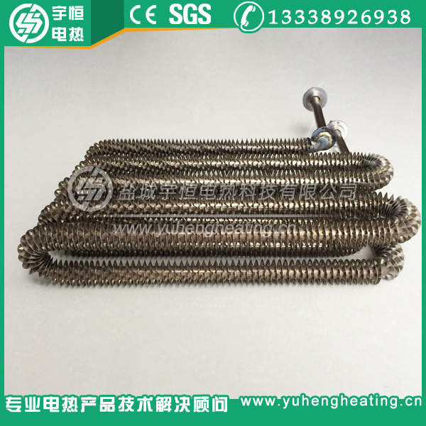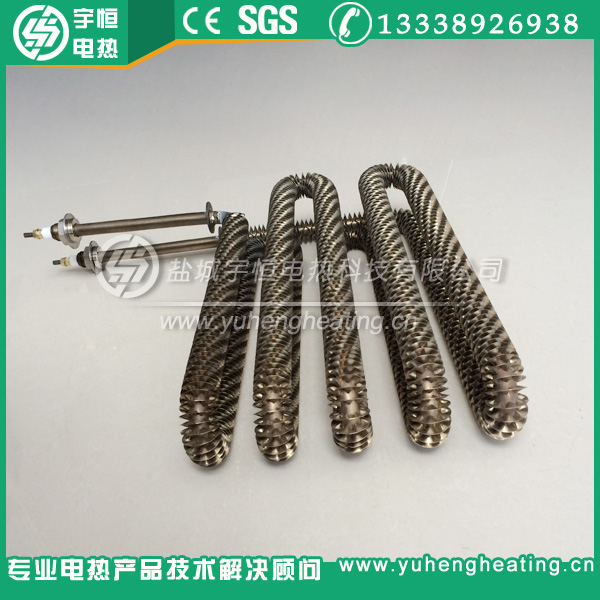 翅片式电加热管,是在普通元件表面缠绕金属散热片,与普通元件相比散热面积扩大了2~3倍,即翅片元件所允许的表面功率负荷是普通元件的3~4倍。由于元件的长度缩短,使得本身的热损失减小,在相同的功率条件下具有升温快、发热均匀、散热性能好、热效率高、使用寿命长、加热装置体积小,成本低等优点。根据用户要求进行了合理的设计,便于安装。