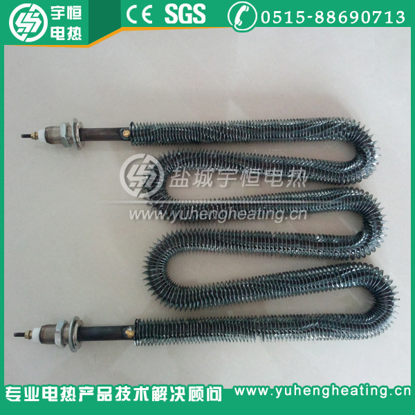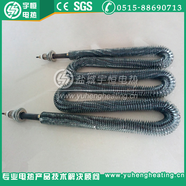 翅片式电加热管,是在普通元件表面缠绕金属散热片,与普通元件相比散热面积扩大了2~3倍,即翅片元件所允许的表面功率负荷是普通元件的3~4倍。由于元件的长度缩短,使得本身的热损失减小,在相同的功率条件下具有升温快、发热均匀、散热性能好、热效率高、使用寿命长、加热装置体积小,成本低等优点。根据用户要求进行了合理的设计,便于安装。