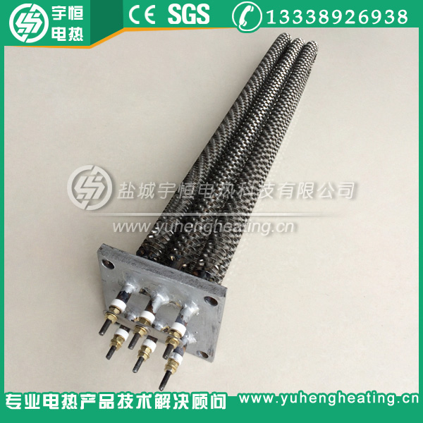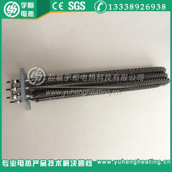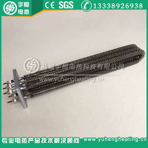 翅片式电加热管,是在普通元件表面缠绕金属散热片,与普通元件相比散热面积扩大了2~3倍,即翅片元件所允许的表面功率负荷是普通元件的3~4倍。由于元件的长度缩短,使得本身的热损失减小,在相同的功率条件下具有升温快、发热均匀、散热性能好、热效率高、使用寿命长、加热装置体积小,成本低等优点。根据用户要求进行了合理的设计,便于安装。