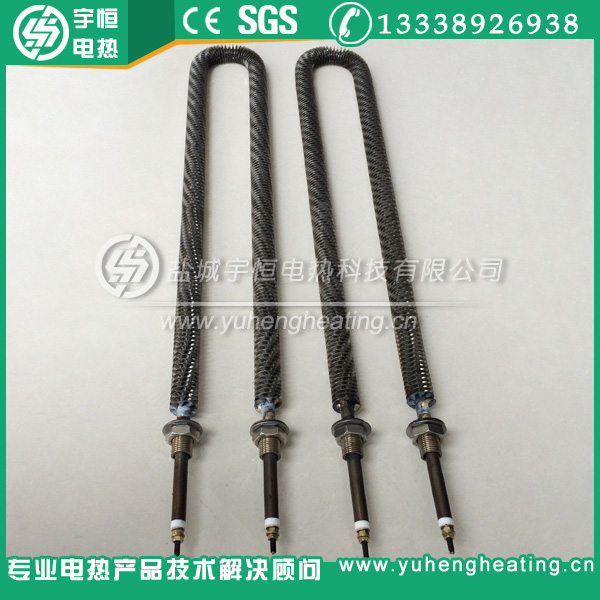 翅片式电加热管,是在普通元件表面缠绕金属散热片,与普通元件相比散热面积扩大了2~3倍,即翅片元件所允许的表面功率负荷是普通元件的3~4倍。由于元件的长度缩短,使得本身的热损失减小,在相同的功率条件下具有升温快、发热均匀、散热性能好、热效率高、使用寿命长、加热装置体积小,成本低等优点。根据用户要求进行了合理的设计,便于安装。